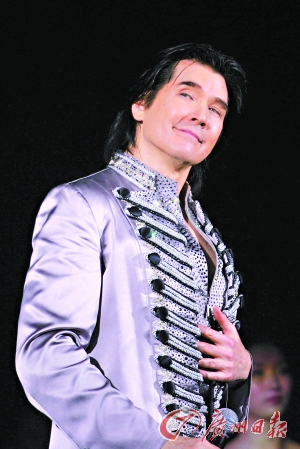 前晚,備受期待的"我心飛翔·2009費翔金曲演唱會"在廣州中山紀念堂舉行。雖然事先就知道當晚會有幾位嘉賓串場,但不到兩個小時的演唱會中,費翔一共只唱了一個小時。這個曾在美國百老匯打拼多年的老牌偶像,一首載歌載舞的《冬天里的一把火》之后已經氣喘吁吁,他自嘲說“真的是上歲數了”。