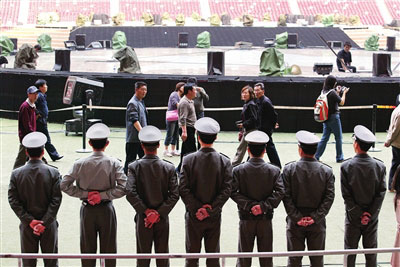 成龍和他的朋友們演唱會是奧運會后鳥巢迎來的第一個大型活動。屆時到鳥巢觀看演唱會的觀眾將超過5萬人,為了確保觀眾的安全,從5月1日中午12時起,鳥巢將停止出售參觀門票,當天下午3時,鳥巢將清場。下午4時30分開始,觀看演唱會的觀眾開始入場。演唱會將沿用奧運會時的安保模式,8個入口全部開放并設(shè)置安檢設(shè)備,同時在場館公共區(qū),安保人員還將排出一個長738米的通道,供演唱會觀眾使用,與其余參觀者隔離開。演唱會使用的安保人員中,有700名是奧運會時的志愿者,此外,參加安保工作的民警、保安等也全部經(jīng)歷過奧運會的考驗。
