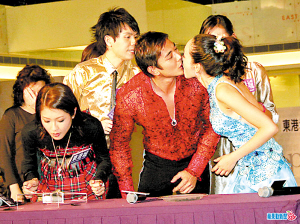 圖文:黃長興楊思琦現場玩游戲 不慎接吻露尷尬