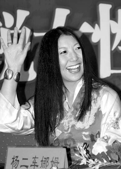 去年在娛樂(lè)圈鬧騰了大半年、被評(píng)為2007年娛樂(lè)紅人的楊二車娜姆在新年伊始首度高調(diào)出場(chǎng),帶著她的新書(shū)與北京的媒體見(jiàn)面。每個(gè)女人都是一朵花,每個(gè)人都有一朵心中的花。“戴花”成了楊二的一個(gè)符號(hào)。一身傳統(tǒng)的藏式長(zhǎng)袍,一頭烏黑的長(zhǎng)發(fā)披肩,但是卻少了發(fā)間的那朵標(biāo)志性的大紅花,楊二的這一全新的裝扮讓在座記者都議論紛紛。