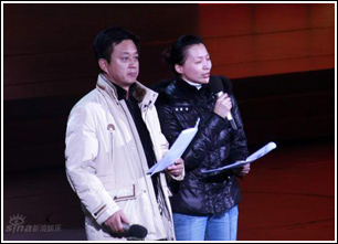 今年春晚主持人的出場方式與眾不同,記者在現場看到,開場歌舞《飛向春天》跳到一半時,朱軍、董卿、李詠、周濤、張澤群、劉芳菲6位主持人“從天而降”,用特殊的方式給全國觀眾拜年。如果說往年“4+2”的主持人模式讓觀眾有些“審美疲勞”,那么白巖松、畢福劍的加入無疑增添了新看點。一貫嬉皮笑臉的畢福劍要介紹《星光大道》的年度總冠軍、盲人小伙楊光出場。平日里喜好板臉說事的白巖松要采訪王寶強,引出《農民工之歌》。不過,將在今年春晚上一人表演兩個節目的王寶強并沒有參加聯排。