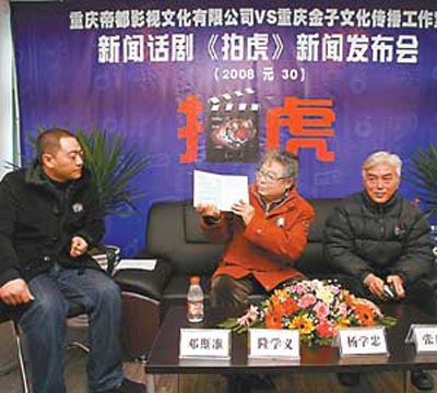 用如此真實的事件來創作,難道不怕鬧上法庭?隆學義認為,他早就考慮到了這個問題,“我在創作的時候已經咨詢了律師,而且《拍虎》對周老虎也沒有下一個定論,周正龍他憑什么來告我呢?如果他要告,早就告那些說他造假的人了。還有就是話劇本身并不針對某一個真實的人物和某個特定的單位。”