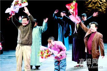 不到七時就坐在觀眾席中的馮遠征說自己“是以人藝演員和人藝藝委會成員的雙重身份來看戲的”。他告訴記者:“我當年演的《北京人》、《太平湖》、《秦皇父子》、《天下第一樓》等話劇,都接受過藝委會的審查。藝委會的評審十分嚴格,記得曾經一部戲里有一個老演員,就因為藝委會的意見而被撤換了下來。”演出之后,馮遠征表示:“很喜歡這部戲,倒敘的方式是一個新的嘗試。雖然從一開始能推測出大概的故事,但整個戲還是能讓人坐得住。小藝的表演也不錯。最大的遺憾是年輕演員的臺詞還存在問題,有些地方聽不清楚,而且一聽就不是北京人。”同樣是藝委會成員之一的梁冠華也直言不諱:“這是我第一次看這些年輕演員的表演,他們的臺詞功底還不夠,劇中的北京話兒說得不夠地道。藝委會還將開會討論這個戲,我們都會把意見直接提出來,對這個戲和這些年輕演員應該負責任。”