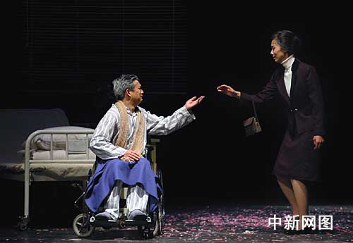 最后一幕的“壓軸場(chǎng)”是分別四十多年的云之凡和江濱柳在病房相見,黃磊和孫莉默契細(xì)膩的表演令全場(chǎng)觀眾為之動(dòng)容,他們將看似平淡的兩位老年人之間的對(duì)話演繹得波瀾起伏,觀眾完全可以感受到云之凡在平靜外表下內(nèi)心的情緒起伏變化以及幾十年來的情感積累和煎熬。當(dāng)孫莉與黃磊在臨別前最后一次握手時(shí),劇場(chǎng)里的啜泣聲幾乎比平時(shí)大了一倍多,觀眾真正體會(huì)到當(dāng)年《紐約僑報(bào)》評(píng)價(jià)該劇“最后一幕時(shí)劇場(chǎng)的墻壁幾乎要溶化掉”的感覺。