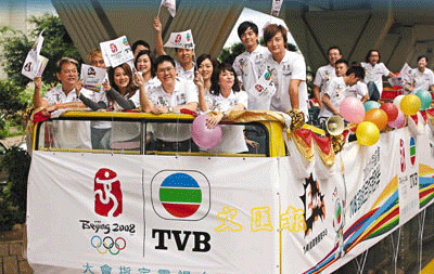 據(jù)香港“文匯報”報道,無線昨日分別在《TVB 超級合作伙伴》之EMax及MegaBox舉行“2008北京奧運會公布 TVB奧運主持陣容暨誓師儀式”活動,首先到EMax正式公布TVB北京奧運主持陣容,而出席的有鄭裕玲、陳百祥、李克勤、方力申、葉翠翠、陸詩韻、楊天經(jīng)等。