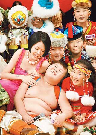 中新網7月23日電 內蒙古五彩呼倫貝爾兒童合唱團昨天錄制臺灣綜藝節目《康熙來了》,小朋友塞爆攝影棚,并和節目主持人小S玩得不亦樂乎。