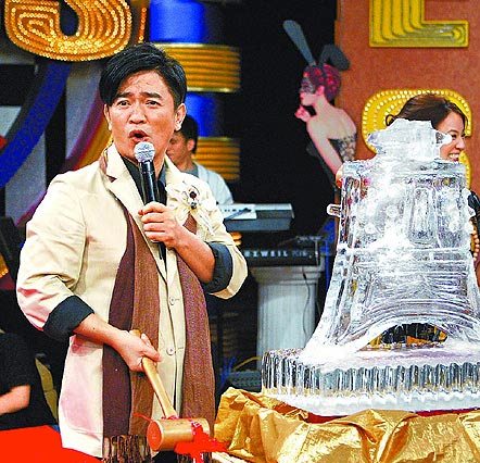 吳宗憲昨錄《我猜》,敲冰磚慶功。