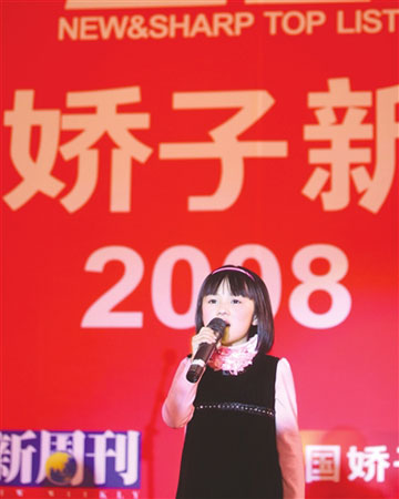 昨晚的頒獎(jiǎng)典禮一開始,一陣天籟般的童聲就從會(huì)場傳來,一個(gè)留著娃娃頭的可愛小姑娘唱著《歌唱祖國》登上了舞臺(tái)。她就是奧運(yùn)會(huì)開幕式那首《歌唱祖國》的演唱者楊沛宜。楊沛宜在這次中國嬌子新銳榜中獲得了“2008年最美的聲音”,巴蜀鬼才魏明倫成為了她的頒獎(jiǎng)嘉賓。