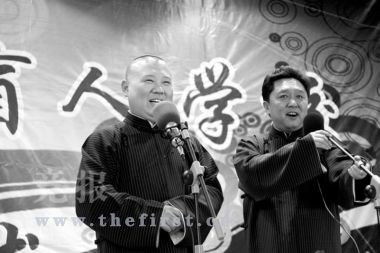 從窗戶望出去,能看到山,這種景致讓許多身處都市的人心動(dòng)。但是,窗子邊的孩子們卻看不到這種景致,他們是北京市盲人學(xué)校的盲童。昨日,這些看不到美麗風(fēng)景的盲人孩子卻聽(tīng)到了令人捧腹的相聲——郭德綱和搭檔于謙、師弟高峰等人帶來(lái)一場(chǎng)快意的演出。