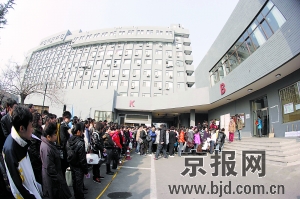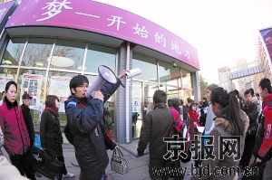 今年北電表演系初試一共8個考場,每個考場三名考官,其中不乏徐靜蕾、黃磊這樣的明星考官。考生們25個人一批進(jìn)入一個考場,之后分兩組坐定,首先進(jìn)行自我介紹,并準(zhǔn)備一段3分鐘內(nèi)的朗誦材料,可以是詩歌、散文、小說或電影、戲劇里的一段獨白。隨后,老師給出一個集體小品題目,第一組考生出去準(zhǔn)備。第二組再重復(fù)進(jìn)行。