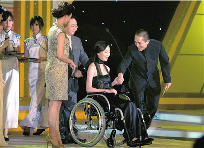 張藝謀、宋祖英為劉巖頒發“中國年度舞蹈最佳表現女演員獎”。劉巖坐著輪椅緩緩上臺時,張藝謀連忙跑過去幫扶。劉巖哽咽著說:“為了奧運,我們舞者獻出了所有力量,雖然最后我沒能演出,但是依然感到光榮。”
