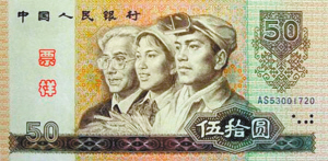 從網(wǎng)上曝光的專輯封面看,其設(shè)計與舊版50元人民幣十分類似。專輯封面上,雪村頭戴煉鋼工人眼鏡,和一個頭戴毛巾的胖男人、一個戴著眼鏡,科學(xué)家模樣的人并排出現(xiàn)在正中間。這一設(shè)計與舊版50元人民幣正面主景工人、農(nóng)民、知識分子頭像極其相似。50元人民幣左上角“中國人民銀行”的字樣在專輯封面上被改成了“雪村音樂評書”,右上角阿拉伯數(shù)字“50”的字樣被改成了專輯名《慶功酒》。