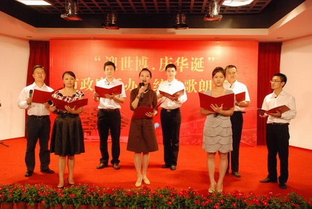 中新網(wǎng)9月4日電 為了迎接中國(guó)2010年上海世博會(huì)的召開(kāi),慶祝中華人民共和國(guó)建國(guó)六十周年,上海市政府僑辦系統(tǒng)于9月1日假靜安區(qū)文化館舉行“迎世博、慶華誕”詩(shī)歌朗誦比賽,市委統(tǒng)戰(zhàn)部副部長(zhǎng)丁志堅(jiān),市政府僑辦副主任陳文佳、倪俊南、劉建平出席活動(dòng)。比賽還邀請(qǐng)到宋懷強(qiáng)、劉子楓、趙靜、程乃珊等僑界知名藝術(shù)家擔(dān)任評(píng)委。