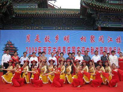 中新網(wǎng)9與30日電 9月29日下午,在南京市下關(guān)區(qū)閱江樓風(fēng)景區(qū),隆重舉行了主題為“月是故鄉(xiāng)明 相聚閱江樓”的大型僑界游園聯(lián)誼活動(dòng)。南京市歸僑僑眷代表、華僑華人代表、留學(xué)人員代表,約1000余人歡聚在閱江樓,登樓賞景,觀看演出,共迎中秋佳節(jié),共慶建國(guó)六十華誕。