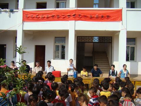 中新網(wǎng)10月19日電 為響應(yīng)中國僑聯(lián)關(guān)于動(dòng)員海內(nèi)外僑界力量,積極援建北川中學(xué)的號召,弘揚(yáng)僑愛心小學(xué)“幫助別人,愛心無限”的優(yōu)良傳統(tǒng),6月11日,江西省僑聯(lián)在泰和縣石山鄉(xiāng)“輝芬僑心小學(xué)”落成典禮上,拉開了全省僑心學(xué)校開展“我為北川中學(xué)添一塊磚”的愛心傳遞活動(dòng)的序幕,前來參加慶典的領(lǐng)導(dǎo)嘉賓與輝芬僑心小學(xué)的全體師生一道為援建北川中學(xué)奉獻(xiàn)自己的一片愛心。