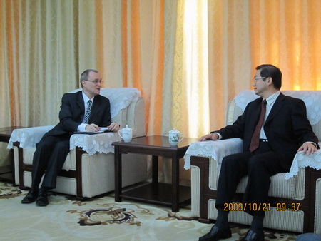 同時,崔明華還向米哈依介紹了上海市僑辦內部機構設置和主要職責。米哈依感謝崔明華的介紹,并表示希望更多的匈牙利國內城市的官員來中國、上海參觀訪問,屆時他非常愿意介紹他們來訪問上海僑辦。