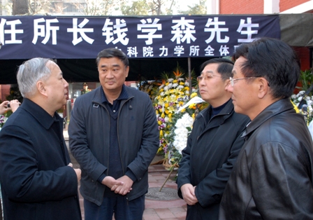 錢(qián)學(xué)森的兒子錢(qián)永剛等親屬對(duì)前來(lái)吊唁的中國(guó)僑聯(lián)領(lǐng)導(dǎo)表示感謝。李祖沛說(shuō),錢(qián)學(xué)森同志是我們僑界的楷模,是一面永遠(yuǎn)不倒的旗幟,他的逝世,是中國(guó)人民的巨大損失,更是僑界的巨大損失。我受中國(guó)僑聯(lián)主席林軍的委托,代表中國(guó)僑聯(lián)和廣大歸僑僑眷、海外僑胞前來(lái)吊唁,對(duì)他的逝世表示深切哀悼。