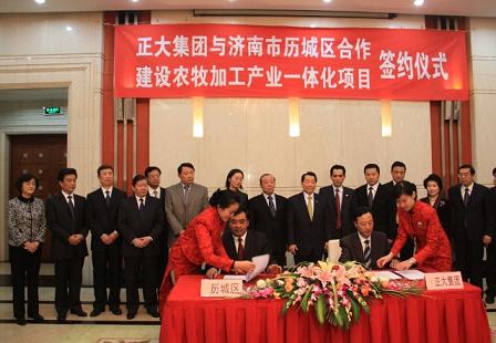 這次雙方合作,旨在充分發揮正大集團在品牌、市場、資本、管理等方面優勢,進一步加快歷城區農業產業化和新農村建設進程,形成戰略性合作。泰國正大集團將與歷城區政府初步確定以“政府-企業-銀行-農民(合作社)”的“四位一體”模式,建設50萬頭豬現代化養殖加工項目,逐步打造完整的現代農業產業化鏈條,建設具有國際水準和較強市場競爭力的現代化農業精深加工基地。