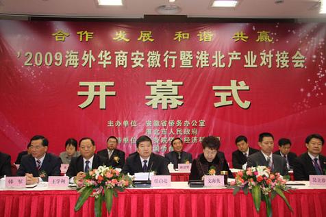 中新網12月10日電 據國僑辦網站消息,12月5-6日,由安徽省僑辦和淮北市政府共同主辦、國務院僑辦經濟科技司支持的“2009海外華商安徽行暨淮北產業對接會”在淮北市舉行。國僑辦副主任任啟亮、安徽省副省長文海英以及淮北市委書記畢美家出席活動并講話。50多位海外僑商以及淮北市委、市政府相關部門負責人參加了活動。