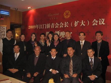 中新網12月14日電 據廣東僑網消息,為積極做好第二屆世界江門青年大會在澳門召開的籌備工作,2009年江門僑青會會長擴大會議暨品酒晚宴于12月9日晚召開,廣東省江門市副市長謝日榮,美洲各地中華會館中華公所華僑總會聯誼會秘書長、僑青會榮譽會長黃金泉,市外僑局局長、僑聯主席張國富以及僑青會員等40多人出席。