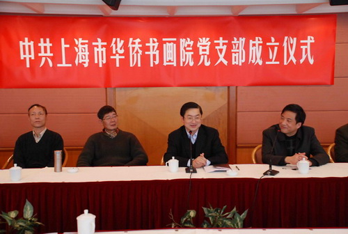 上海市僑辦主任、黨組書記崔明華出席并講話。他高度評價了華僑書畫院的書畫家們在弘揚中華優(yōu)秀傳統(tǒng)文化、熱衷社會公益事業(yè)等方面作出的積極貢獻(xiàn),向加入書畫院黨組織的黨員書畫家們表示熱誠地歡迎。