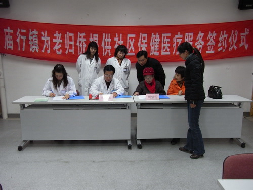 中新網(wǎng)12月25日電 據(jù)上海市僑辦消息,日前,上海市寶山區(qū)廟行鎮(zhèn)社區(qū)衛(wèi)生服務(wù)中心與早期歸僑周紫雯共同簽訂了《提供社區(qū)保健醫(yī)療服務(wù)協(xié)議書》。