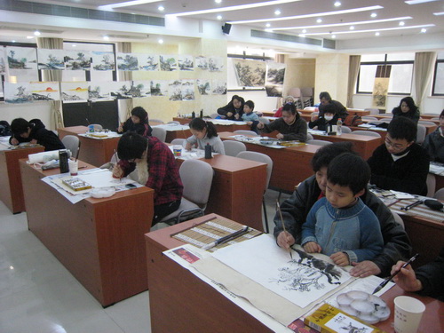 2009年12月5日由華僑青年、華僑子女、少數(shù)民族子女、困難家庭子女組成的首期山水畫班正式開班。雖然學(xué)生的水平參差不齊,而且年齡跨度很大,但經(jīng)過老師的因材施教和自己的勤奮刻苦,在兩個月內(nèi)都取得了很大的進(jìn)步。