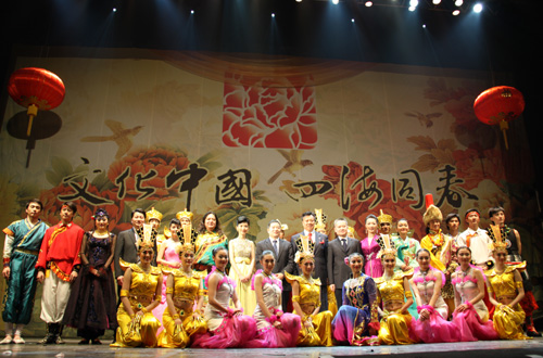 熱烈喜慶的《新春花鼓》拉開了 “文化中國·四海同春”歐洲巡演的序幕。美麗婀娜的維族舞蹈《頂碗舞》、熱情奔放的藏族舞蹈《快樂藏人》、氣勢雄渾的馬頭琴獨奏《萬馬奔騰》贏得陣陣掌聲;歌唱家呂薇的一曲充滿鄉音的《采茶舞曲》,讓浙江籍僑胞倍感親切;著名男高音歌唱家劉斌鏗鏘有力的《咱當兵的人》,將整臺演出推向高潮;美輪美奐的舞蹈《千手觀音》落下了藝術團在法演出的帷幕。持續近三個小時精彩絕倫的演出不時地博得了觀眾雷鳴般的掌聲。僑胞們在《難忘今宵》的音樂聲中久久佇立,不愿離去,贊嘆“這是一場內容豐富、充滿激情、民族特色濃郁、藝術水準高超的演出,令人難忘”。他們由衷地感謝國務院僑辦在新春之際為旅法僑胞帶來的文化盛宴。