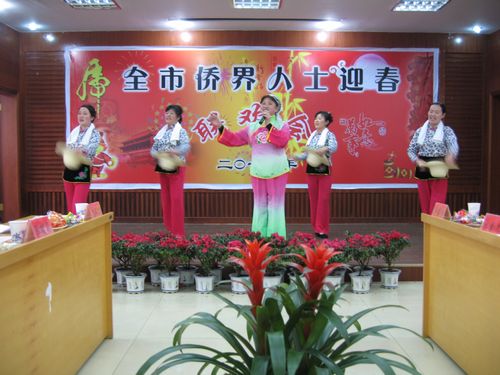 聯歡會上,歸僑僑眷和僑務干部們自編自演,用歌曲、舞蹈等多種形式表達新春來臨的喜悅心情。