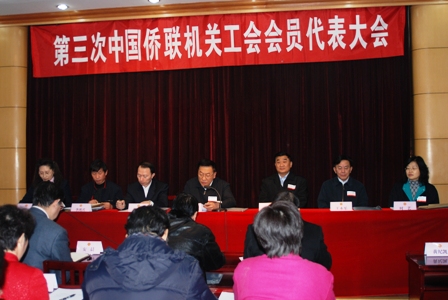 中新網2月20日電 據中國僑聯網消息,日前,第三次中國僑聯機關工會會員代表大會在雄壯的《國歌》聲中隆重召開。中國僑聯黨組書記、主席林軍,黨組成員、副主席、直屬機關黨委書記李祖沛,黨組成員、副主席董中原、王永樂出席會議,40名工會會員代表和機關各部門負責人參加了會議,大會主席團執行主席郭敏燕主持了會議。