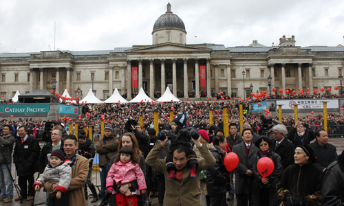 中新網(wǎng)2月22日電 2月21日中午,近三十萬英國華僑華人及當(dāng)?shù)孛癖妳R集在倫敦特拉法加廣場,共同觀賞了由中國國務(wù)院僑辦副主任任啟亮率領(lǐng)的“文化中國•四海同春”藝術(shù)團(tuán)的精彩演出。中央民族歌舞團(tuán)極具民族特色的歌舞和著名歌唱家劉斌、呂薇、桐瑤的傾情表演深深地打動(dòng)了數(shù)以十萬計(jì)的觀眾,使廣大旅英僑胞在春寒料峭中感受到了來自祖(籍)國的溫暖,也使在場的外國朋友領(lǐng)略到中華文化的魅力。