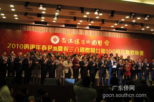 中新網(wǎng)2月26日電 據(jù)廣東僑網(wǎng)消息,2月22日晚,香港龍堡國際賓館冠蓋云集,群賢匯聚。香港僑界社團聯(lián)會在此隆重舉行2010庚寅年春茗暨慶祝三八國際婦女節(jié)100周年聯(lián)歡晚會。廣東省僑辦副主任黎靜出席此次活動,并向該會贈送禮品。