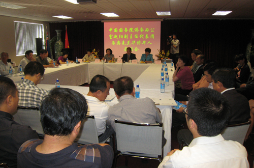 與奧克蘭華僑華人各界人士的座談會在中國駐奧克蘭總領館舉行,由總領事廖菊華主持,當地僑團、僑校、僑報負責人及專家學者等約50人與會,大家就共同關心的奧克蘭華僑華人群體的變化與問題研究、華僑華人身份與國籍問題、僑胞權益保護、華文教育與弘揚中華文化、和諧僑社建設及促進中外各領域交流和中國和平統一大業等,廣開思路、暢所欲言,深入交換看法和意見,積極為海外僑務工作的科學發展建言獻策。