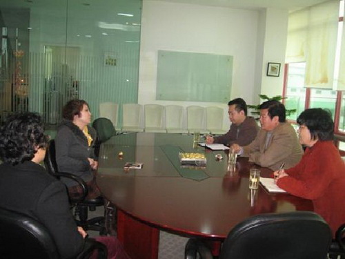 上海依拓紡織有限公司執行董事尤紅言向黃明星一行介紹了公司生產經營情況,開展企業文化建設和關心職工生活的措施。