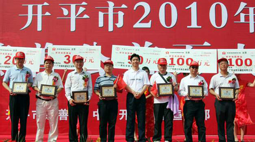 3月3日,開平市在城市廣場舉行2010年慈善公益萬人行活動起步儀式,同時表彰了一批慈善活動作出突出貢獻(xiàn)的海外僑胞、港澳同胞和海外社團(tuán)。據(jù)悉,今年以來,該市慈善會共收到來自海外鄉(xiāng)親、社團(tuán)的捐款1366萬多元,其中海外鄉(xiāng)親捐款達(dá)1297萬元,涌現(xiàn)旅港鄉(xiāng)親譚逢敬先生捐款800萬元,譚華正先捐款200萬元等一批突出貢獻(xiàn)的熱心人士。開平市委書記馮立堅在慈善公益萬人行活動上,接受了海外僑胞和港澳鄉(xiāng)親熱心人士支票捐贈儀式,并代表開平市慈善會向譚氏宗親會、香港開平同鄉(xiāng)會、澳門開平同鄉(xiāng)會。旅港鄉(xiāng)親譚逢敬、譚華正、梁家熹、譚福添、吳漢良、譚錦濠、譚景彬、譚凱銘等善長仁翁頒發(fā)慈善紀(jì)念牌匾予以表彰。