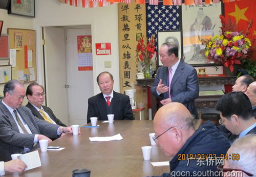 首先,吳銳成向社團領導介紹了廣東省經濟發展情況。他指出中國率先走出國際金融風暴的影響,2009年國民生產總值增長8.5%,經濟總量超越德國成為世界第三大經濟體。廣東作為全國第一經濟大省,國民生產總值增長9.5%。今日廣東,經濟繁榮,社會穩定,人民安居樂業。他誠懇地表示,廣東的發展離不開海外華僑華人的支持,改革開放以來旅。居舊金山的鄉親回家鄉投資,推動廣東產品出口,積極參與家鄉經濟建設,為家鄉的經濟發展和社會進步做出了貢獻。他希望大家多回家鄉看看,多了解家鄉的新變化,了解廣東經濟發展的新機遇,尋找商機,發展事業。最后,吳銳成代表廣東省僑辦向僑胞們送上節日祝福,祝大家身體健康,家庭幸福。