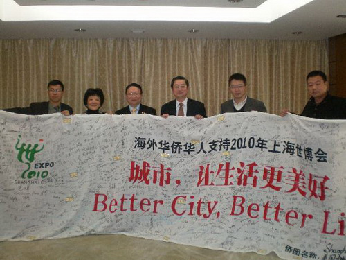 蘇彥韜向崔明華介紹了該會(huì)和他所任總裁的鷹龍傳媒集團(tuán)在近年大力宣傳上海世博會(huì)的情況。據(jù)悉,該會(huì)前后共舉辦了7次世博旗簽名活動(dòng),每次都吸引了成千上萬人參加,有力地提高了上海世博會(huì)在洛杉磯地區(qū)的影響。周琴介紹說,有位行動(dòng)不便的僑胞興奮地在簽名旗上寫下了自己的姓名,并欣慰地說:“我去不了,就讓我的名字去吧!”。