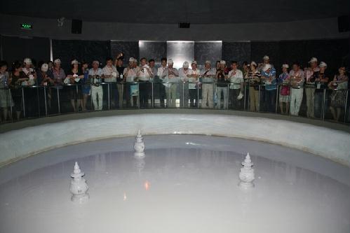 浙江自古被譽(yù)為“魚(yú)米之鄉(xiāng)、絲茶之府、文物之幫、旅游勝地”。 “青瓷大碗”演繹了浙江七千年悠久歷史的滄桑巨變。當(dāng)浙江館的燈光徐徐亮起,在悠揚(yáng)的音樂(lè)中,一聲“浙江人民歡迎你”話音剛落,僑領(lǐng)們情不自禁地?zé)崃夜恼啤I碓诋悋?guó)的“游子”,無(wú)不為家鄉(xiāng)的發(fā)展與進(jìn)步由衷地自豪。