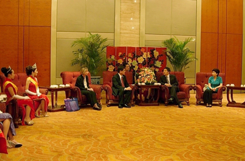 任啟亮代表國務院僑辦和國僑辦主任李海峰歡迎客人來訪,并向新當選的“水仙花皇后”和“公主”致以熱烈祝賀。任啟亮高度贊賞夏威夷中華總商會61年來堅持不懈通過舉辦 “水仙花皇后” 評選活動,在弘揚中華文化、促進中美文化交流方面做出的積極貢獻。他說,中國改革開放走過了30年的風雨歷程,水仙花團也已是第30次訪問中國;商會舉辦了第61屆水仙花文化節,新中國也迎來了61歲的生日。這些機緣巧合見證著國務院僑辦和夏威夷中華總商會的友誼,也見證著中美兩國人民的友好交往。任啟亮希望夏威夷中華總商會繼續全方位開展與中國經貿、文化、科技等方面的交流活動,舉辦更有特色的社團活動,為傳承中華文化、促進中美交流合作、增進兩國人民友誼發揮更大作用。