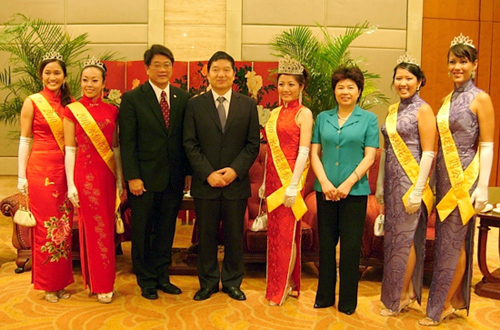 夏威夷中華總商會成立于1911年,1949年開始在華裔女子中舉辦“水仙花皇后”和“公主”的評選活動。1980年開始,組織每屆當選的“水仙花皇后”和“公主”到中國大陸訪問游歷,以增長中華文化知識,加深對祖籍國的感情和認識。該團此行將訪問廣東、云南、北京、河北和上海等地,并出席夏威夷與廣東經貿友好協議簽訂20周年紀念活動,代表檀香山市政府與秦皇島市簽訂兩市建立友好城市協議并參觀上海世博園。