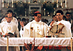 圖片說明: 澳門教區大主教林家駿正在主持彌撒,林家駿是澳門教區成立四百年來的第一位華人主教。