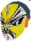 "花臉"和"碎臉"外形相似,凡是腦門和臉頰顏色相同,是碎臉;顏色不一,是花臉。《盜御馬》的竇爾墩、《將相和》的廉頗、《戰宛城》的典韋、《除三害》的周處,勾的是都是"花三塊兒"。